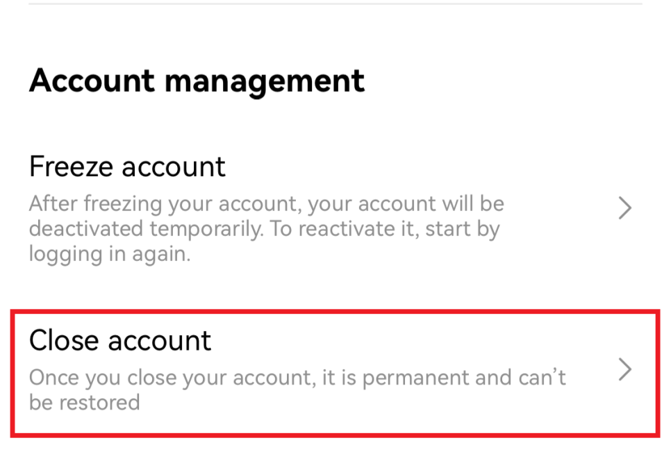 4️⃣ 아래로 내려보면 Close account가 있습니다