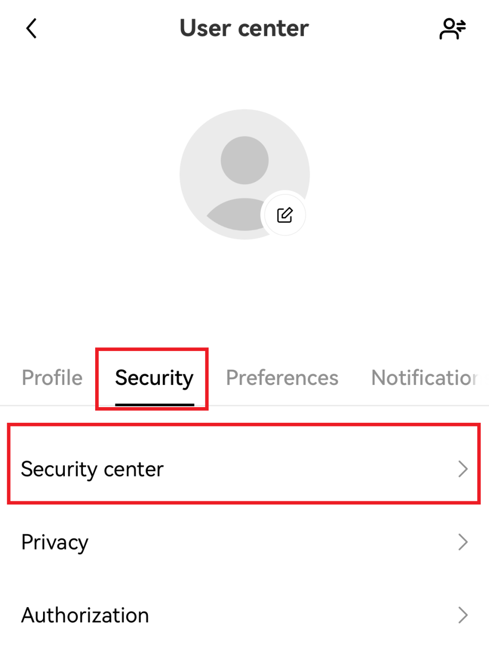 3️⃣ 프로필 화면에서 Security 탭을 누르면 Securiti center를 찾을 수 있습니다 , 클릭해주세요