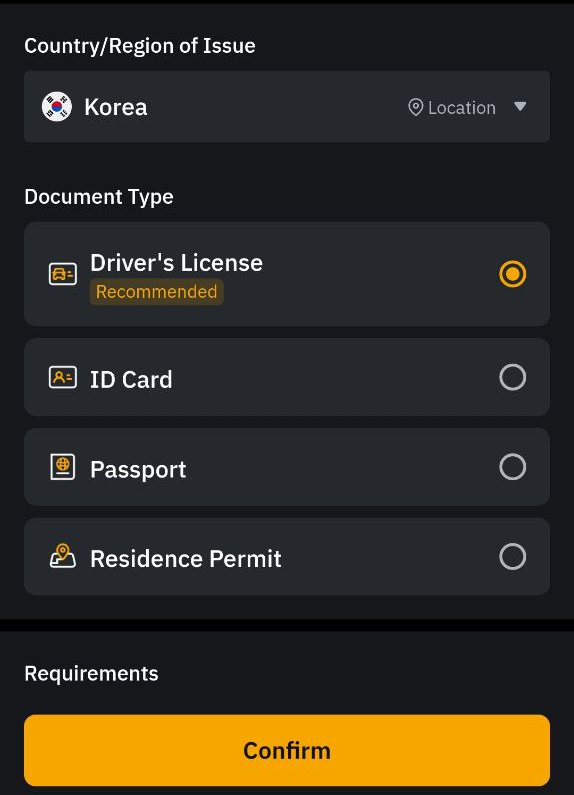 2️⃣ Country/Region of Issue를 South Korea로 설정 후 Document Type을 선택해주시면 됩니다